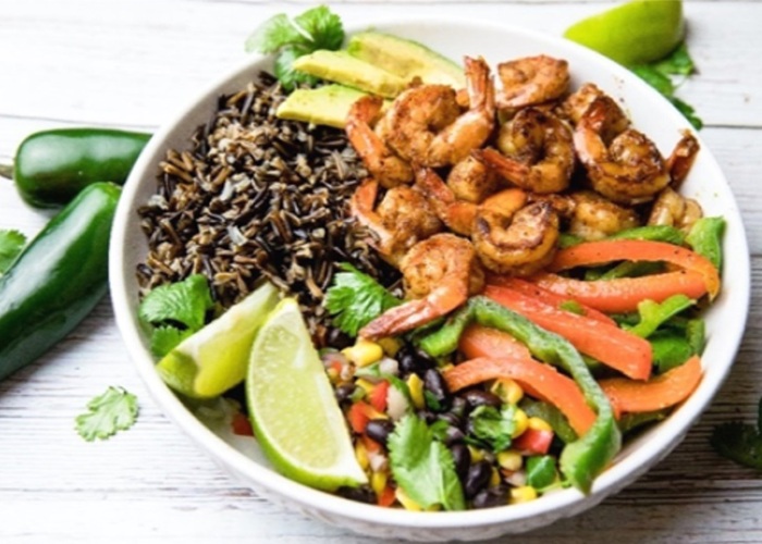Fiesta Shrimp & Wild Rice Bowl A spicy wild rice bowl featuring fiesta shrimp, black bean & corn salsa and sautéed bell peppers. Served with sliced avocado & topped with cilantro & a squeeze of fresh lime! Read more »