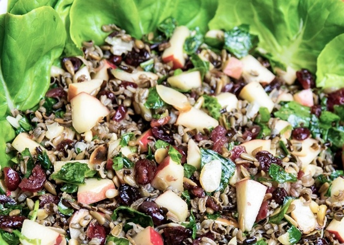 Wild Rice, Apple, Cranberry & Kale Salad A fresh-tasting wild rice salad featuring apples, dried cranberries, kale, almonds, sunflower seeds, pine nuts and a citrus dressing. Read more »