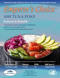 Tuna, Ahi, Poke Cubes 1.5cm. – Emperor’s Choice Top quality Grade AAA product suitable for sashimi and sushi applications. Read more »
