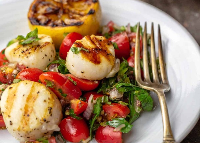 Grilled Scallops with Mediterranean Tomato Salsa Tender, buttery, flavor-packed grilled scallops will take just 5 minute on your grill pan or char grill! Read more »
