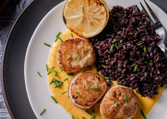Scallops with Golden Romesco Sauce and Black Rice With the bright yellow Romesco contrasting with the deep rich color of the rice and beautiful seared sea scallops, you will be mesmerized visually and through the flavor of this incredible dish! Read more »