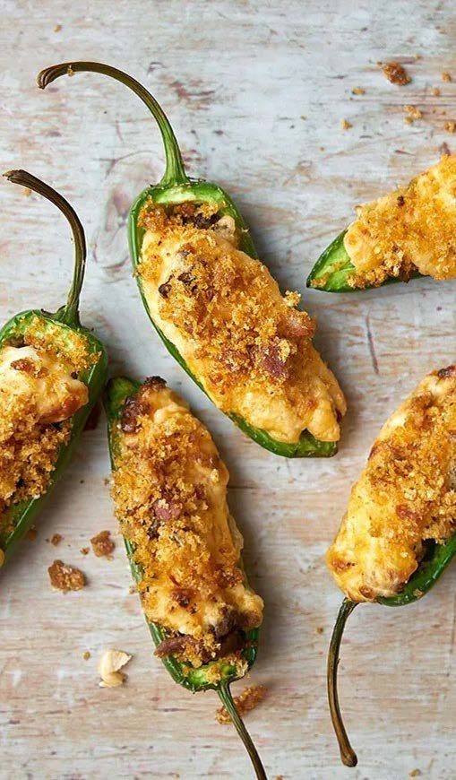 - Using a spoon add the filling mixture into each halved jalapeños, then wrap bacon around and secure with a toothpick.